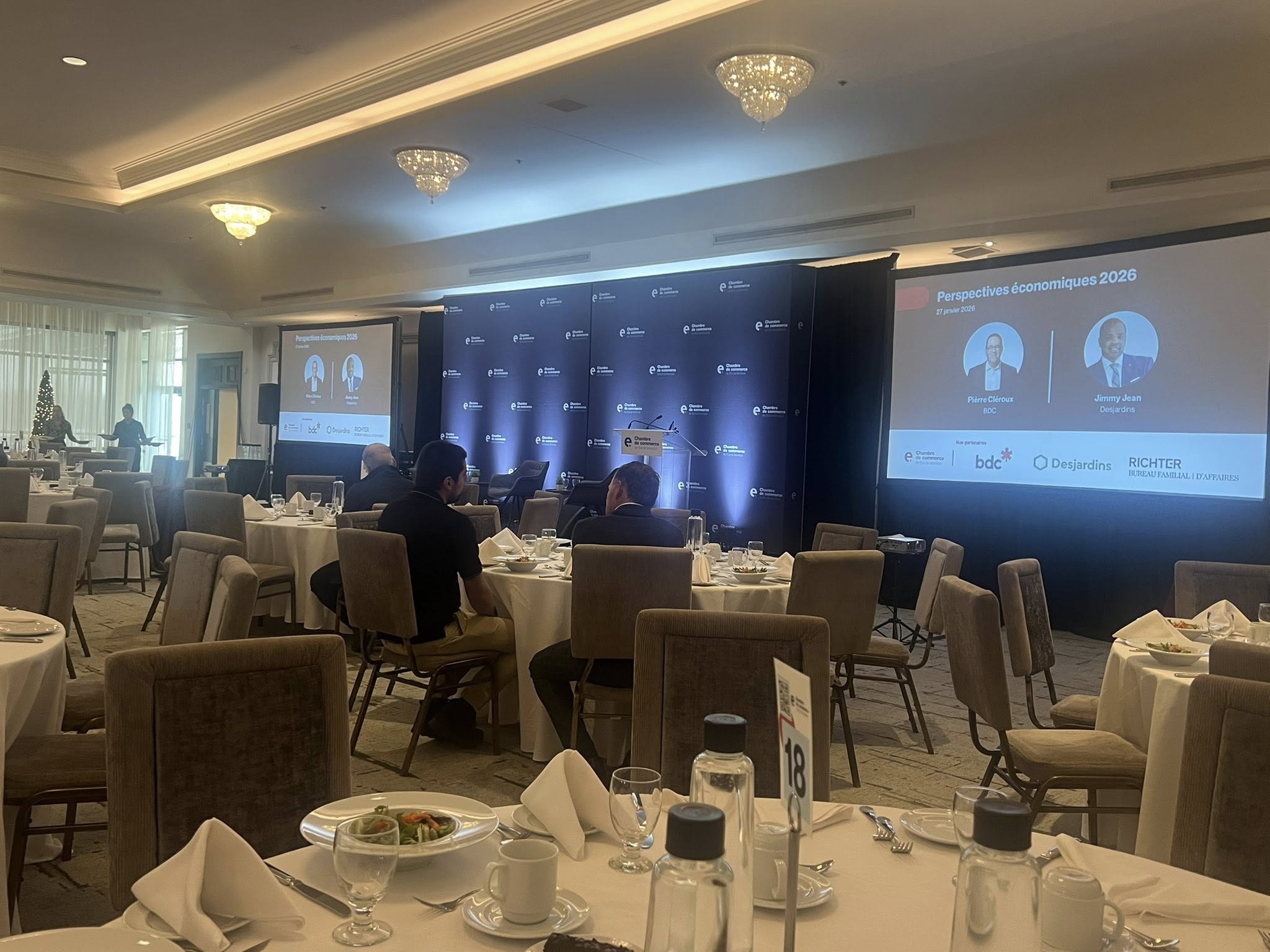 La Chambre de Commerce Haïtienne du Canada (CCHC) a pris part ce matin à l’événement : “Perpectives économiques 2026” de la chambre de commerce de l’Est de Montréal (CCEM). Une conférence présentée par Pierre Cléroux, Vice-président et économiste en chef à la BDC et Jimmy Jean, économiste en chef et stratège du mouvement Desjardins. Résumé : “L’avenir n’est pas certain, les entreprises doivent innover pour survivre. L’Intelligenge artificielle et les VE sont des secteurs à explorer. Plus 140.000 entreprises au Canada sont en mode repreneuriat”. Autant de points interessants et pertinents, la CCHC vous présentera bientôt sont calendrier annuel d’événements.